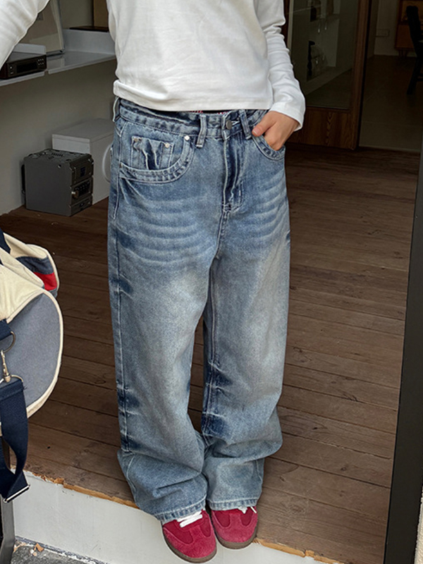 Vintage-Jeans mit geradem Bein und Schlitz Menge
