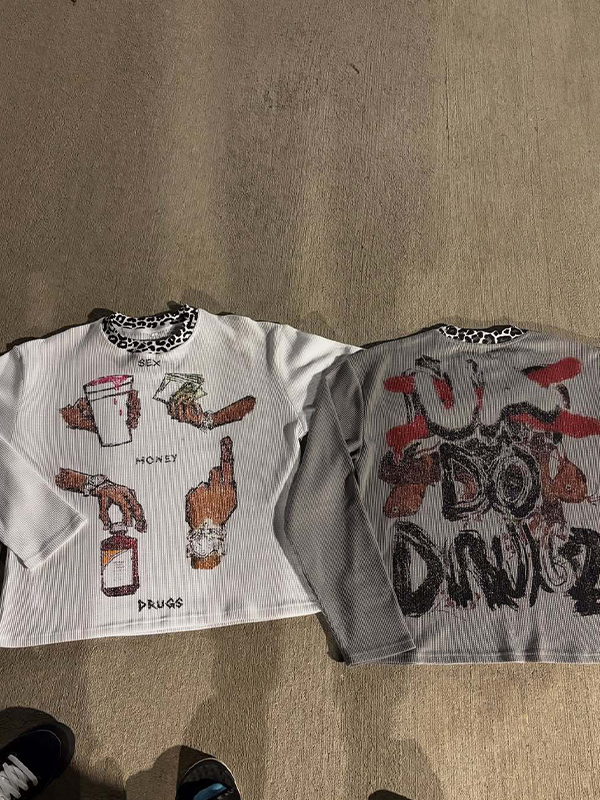 Y2K Leopardenmuster Rundhals T-Shirt Langarm